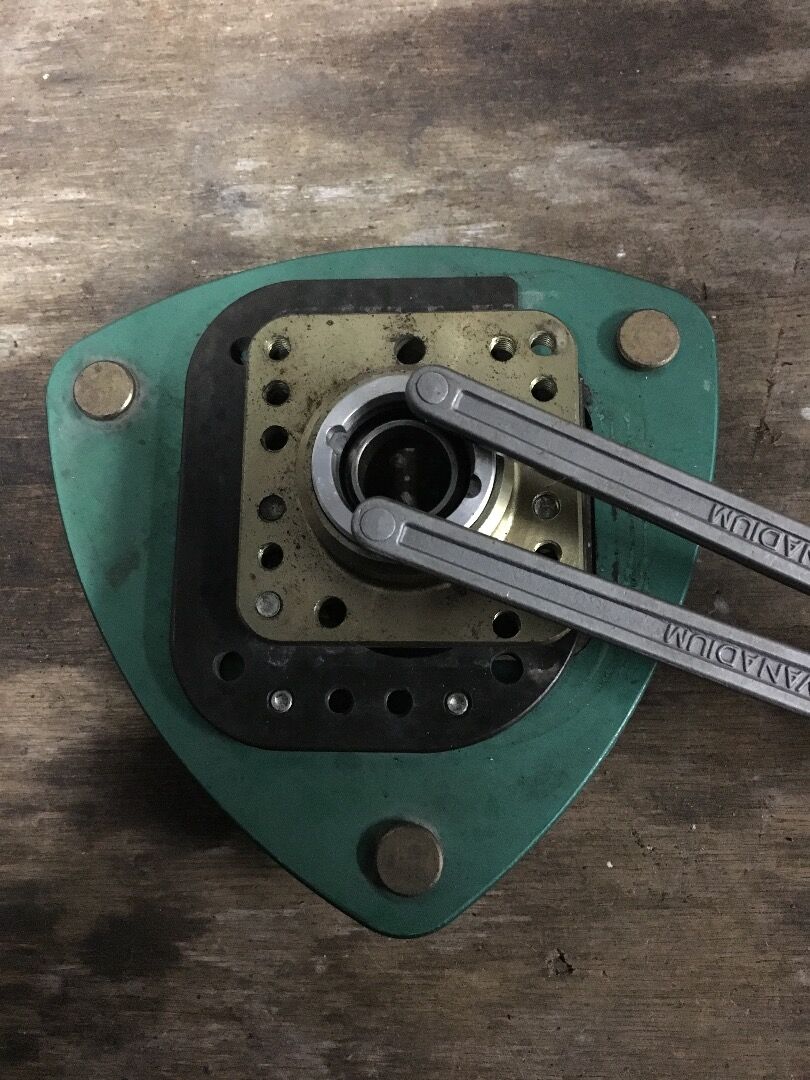 ベースの裏に、アルミのキャップ?で止められているのですが、こいつが外れない。