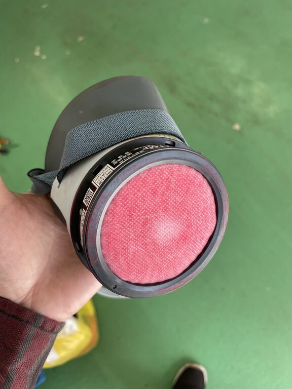 マスクの吸着缶も思いっきり染まっていました。