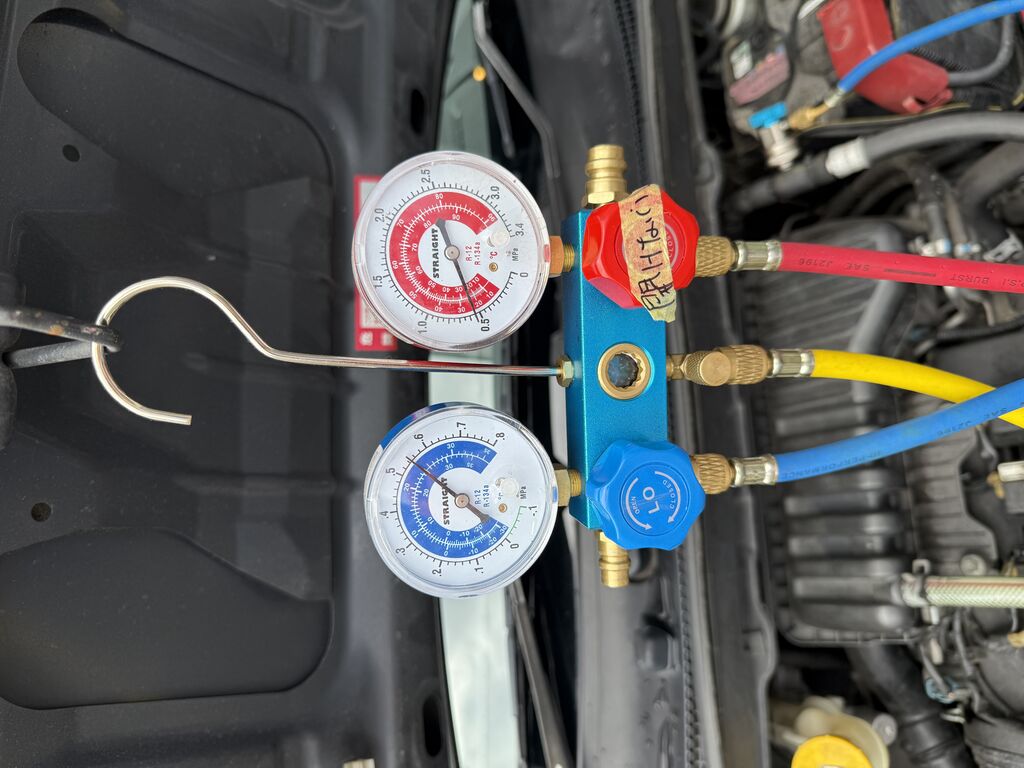 お疲れになってるステラさんのコンプレッサーを労るために、ヤシマ化学のカークール スーパーストロンガーを注入して見ました。